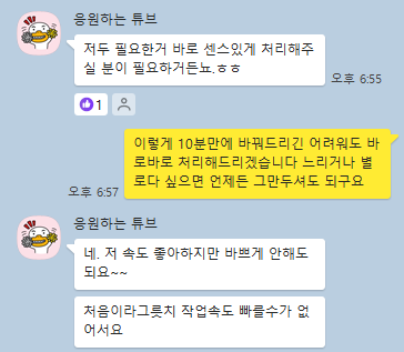그래서 기존의 모든 작업을 카톡 대화를 시작한 지 2시간 만에 해결해드렸습니다. 지금 이 소식을 보고 계신 대표님도 사이트 관리에 어려움을 겪고 계시다면 언제든 문의 주세요. 동일하게 도와드리도록 하겠습니다.